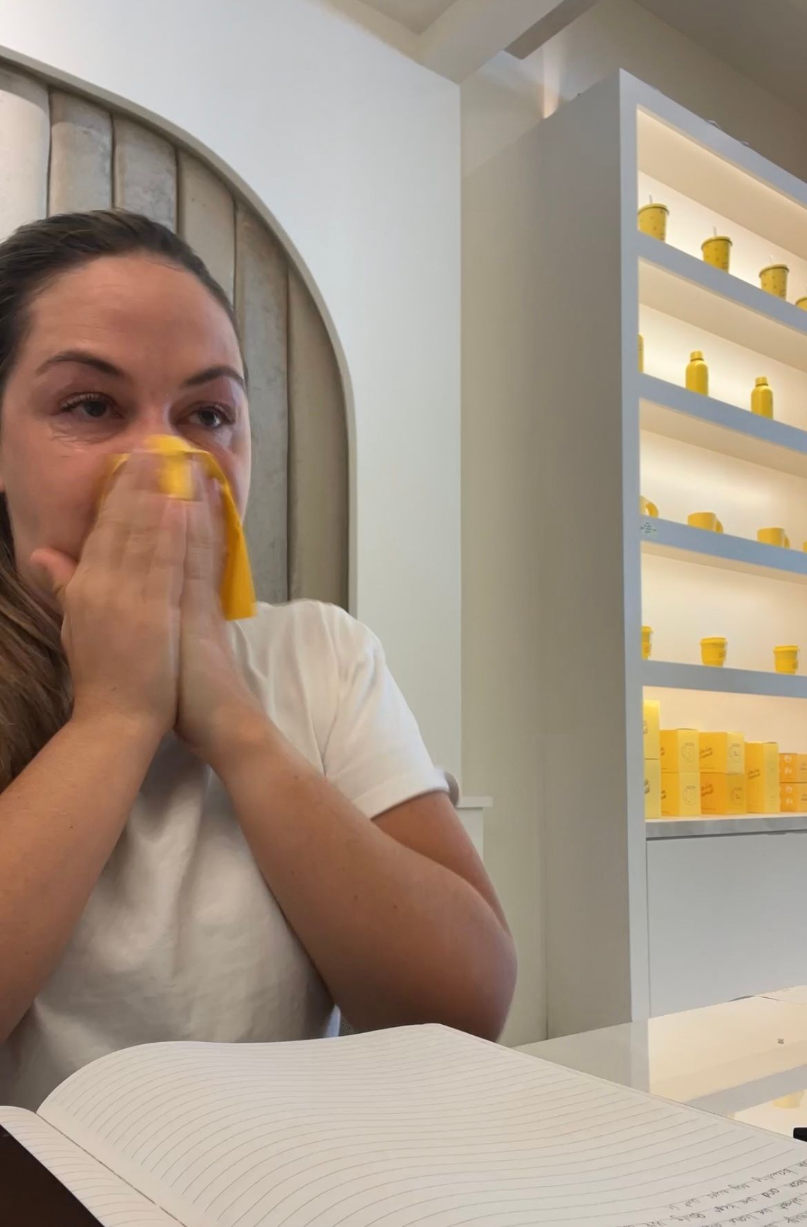 A very unflattering image of me blowing my nose with their yellow napkins 😂